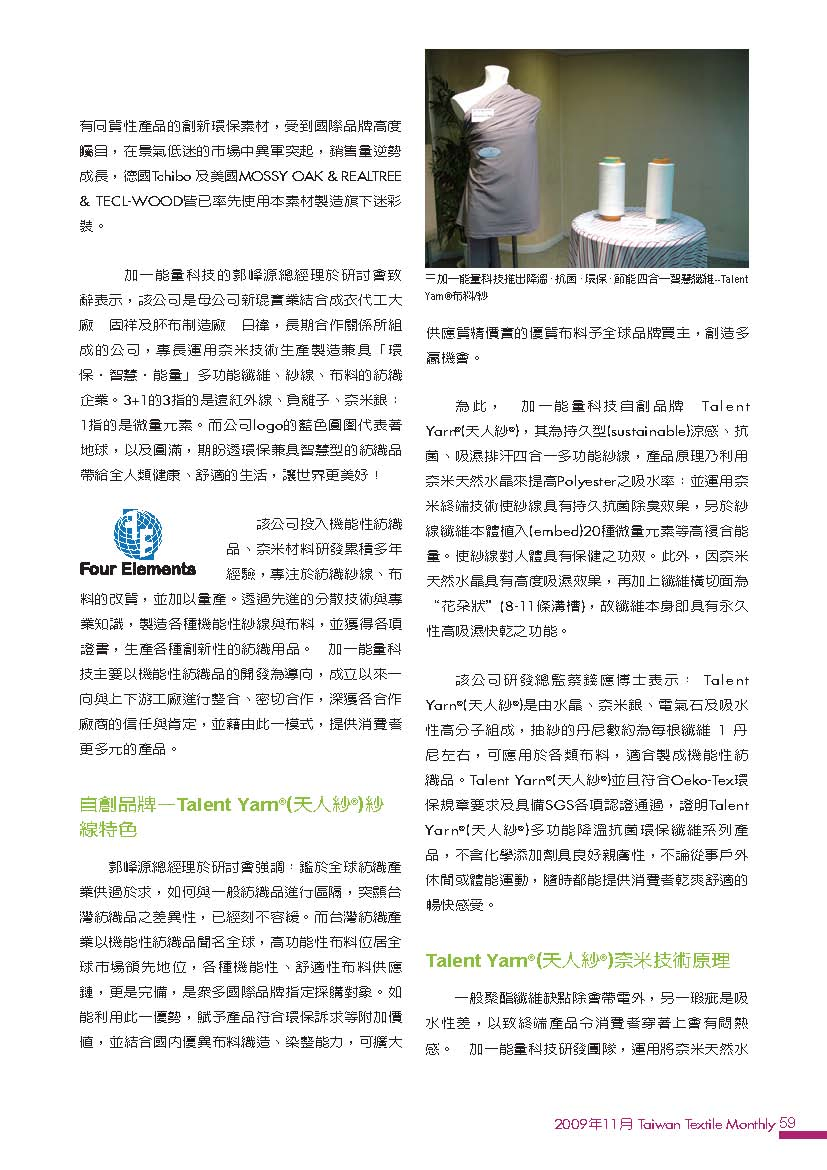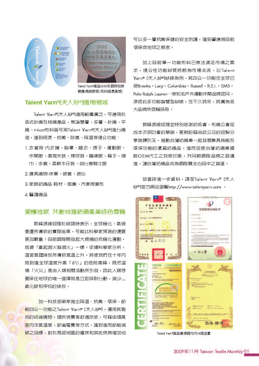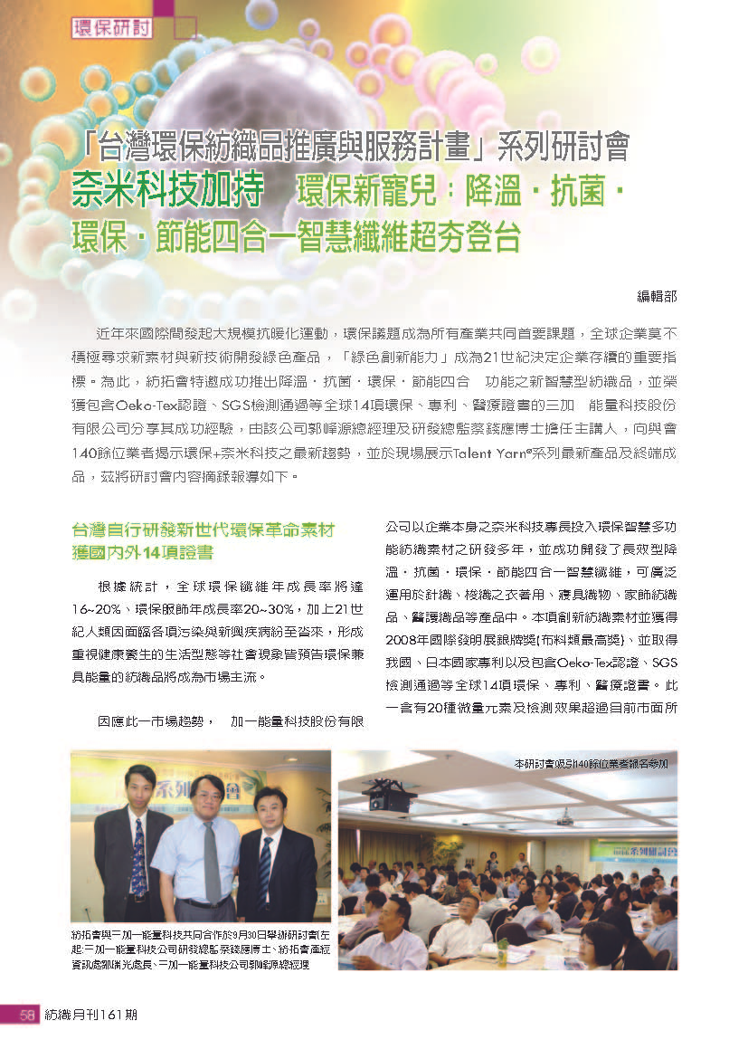 紡拓會特邀成功推出降溫,抗菌,環保,節能四合一功能之新智慧型紡織品 並榮獲